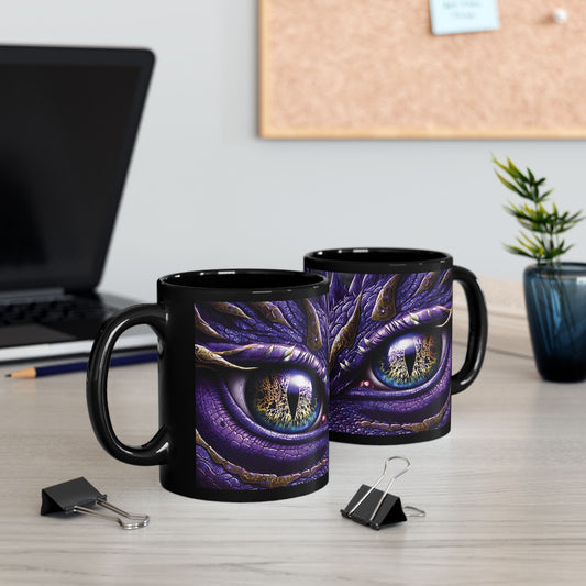 Purple Dragon Eye Mug, Purple Coffee Cup, Black Mug, Dragon Lover Mug, Gift Under 20, Fantasy Mug, Otherworld Scifi Gift for Office Partner